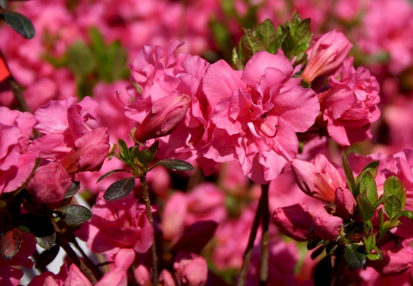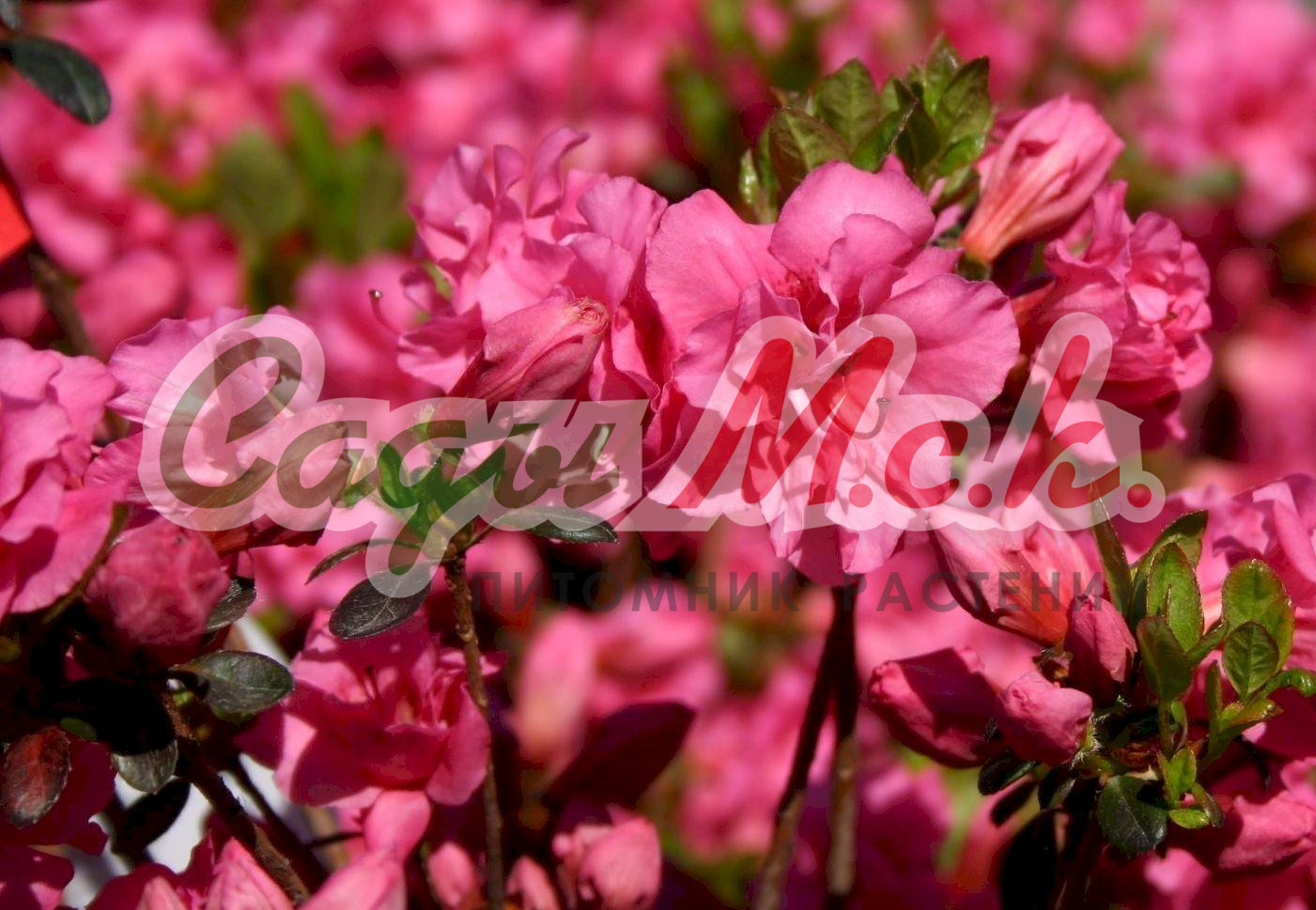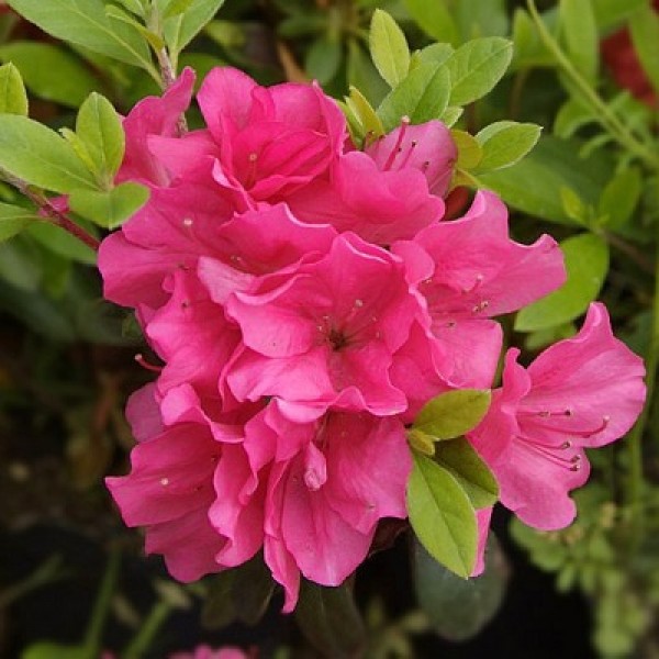 Азалия Бабушка - медленно растущий кустарник компактной шаровидной формы. В 10-летнем возрасте диаметр куста становится около 50 см, высота 30-50см.. Листья темно-зеленые. Цветки многочисленные, крупные, полумахровые, карминово-розовые. Сорт предпочитает полутень. Рекомендуются одиночные или групповые посадки на газонах, в бордюрах, на альпийских горках.