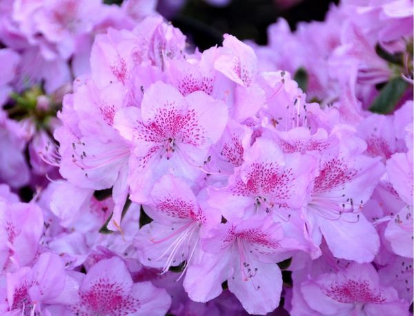 Азалия Ledicanense - неплотный, широкий, вертикальный кустарник, медленнорастущий. К 10 годам достигает 60 см высоты и 120 см ширины. Листья зеленые, эллиптические, кожистые, осенью желтоватые. Цветки светло-сиреневые, крупные, с пурпурно-красным узором на трёх верхних лепестках.