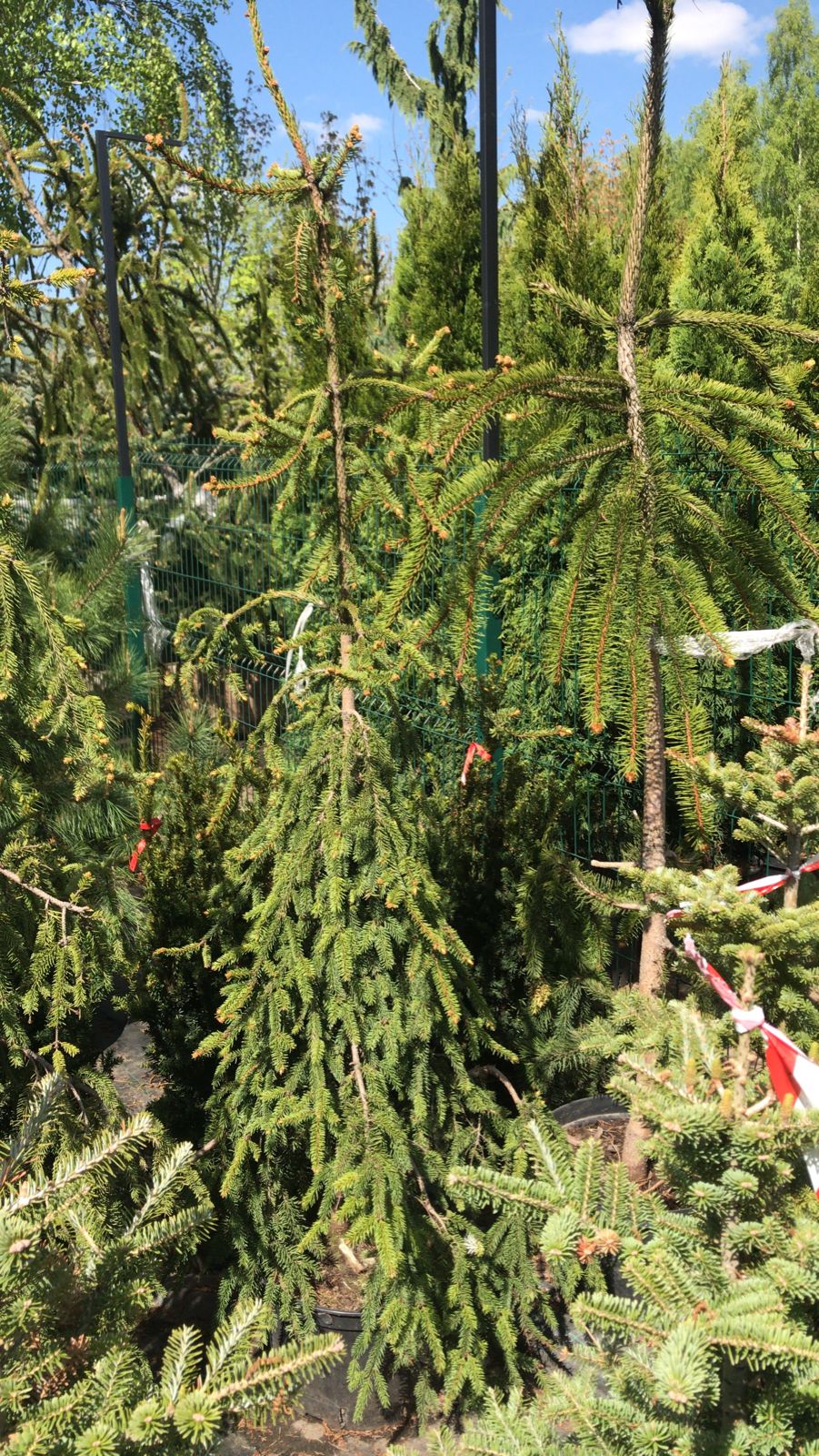 Медленно-растущее хвойное дерево с плакучей колоновидной формой кроны. Ветви и побеги повислые, ниспадающие вниз, нижние ветви красиво распластаны шлейфом по земле. Верхушка имеет заваливающийся характер роста.