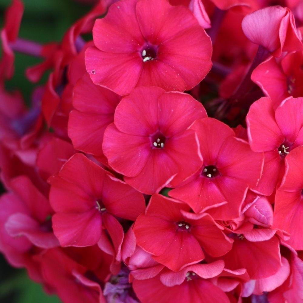 Метельчатый флокс Nicolas Phlammel густо карминно-розовый с высветлением в центре и тёмно-малиновым колечком. Не выгорает на солнце. Соцветие округло-коническое, широкое, большое, плотное, красиво сложенное. Куст компактный, прочный. Цветение продолжительное. Размер цветка 4,5 см. Высота куста 70-90 см. Срок цветения июль.