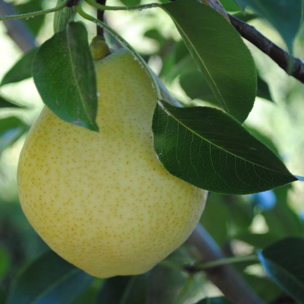 Груша Kieffer. Плоды крупные, кубовидной или бочонковидной формы, с бугристой поверхностью, золотисто-желтого цвета с многочисленными ржавыми точками по всему плоду. Мякоть бело-желтая, хрустящая, очень сочная, сладкая, со специфическим привкусом. Дерево среднерослое, образует пирамидальную загущенную крону, вступает в плодоношение на 3-4 год после посадки. Одно дерево дает около 300 кг плодов. Растение устойчиво к засухам и парше. Обладает очень стойким иммунитетом к болезням и вредителям. Плоды используются в свежем и консервированном виде.
