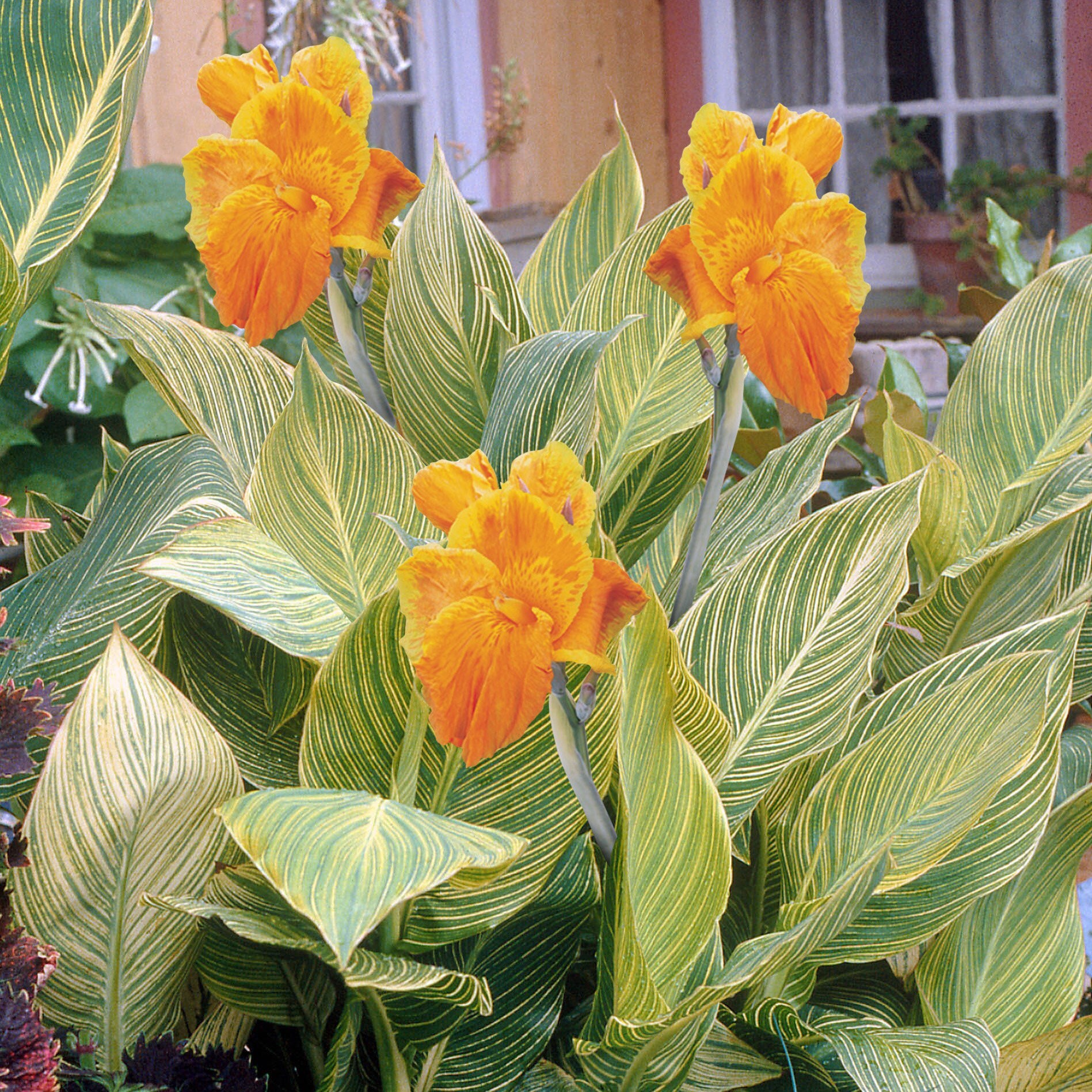 Канна пестролистная Голд Адер будет отлично расти как в открытом грунте, так и на балконе городской квартиры. Хорош этот сорт и для контейнерного озеленения террас. В высоту взрослое растение не превышает 50 сантиметров. Декоративно выглядят не только его желтые или ярко-оранжевые крупные цветки, которые в диаметре достигают 12 сантиметров, но и достаточно большие листья светло-зеленого оттенка с характерными и отчетливо видимыми желтыми прожилками. Когда Канна пестролистная Голд Адер не покрыта цветами, то ее листву можно даже спутать со всеми любимыми пестролистными хостами. В любом случае, эффектно она будет смотреться в любом месте.