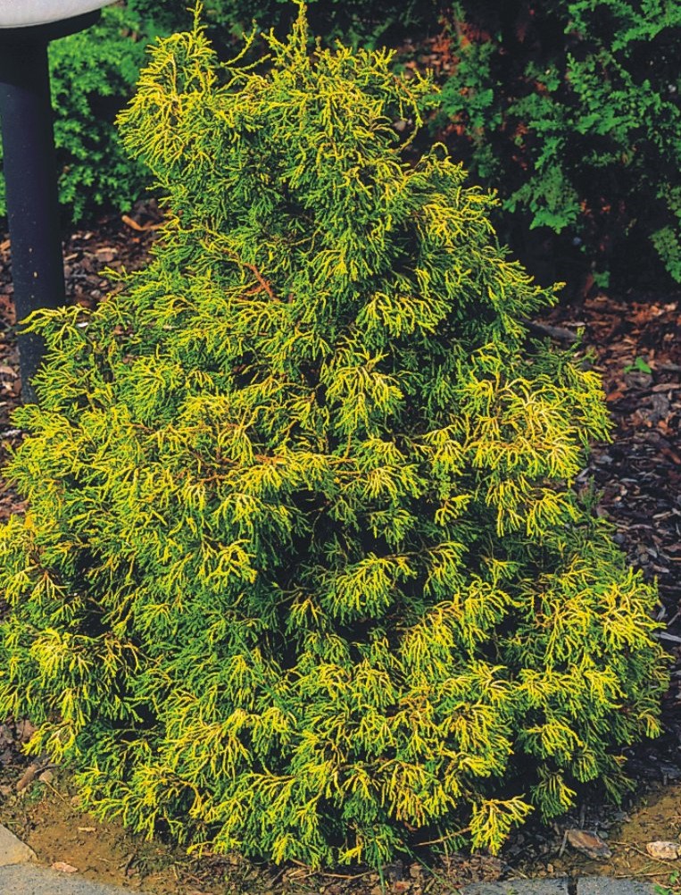 Саженцы кипарисовика Tsatsumi Gold привносят на участок нежное очарование ажурных ветвей c золотисто-зеленой хвоей. Это растение становится украшением альпинариев, а также утонченных японских садиков. Саженцы данного сои голд в среднем вырастает до 150-200 см в высоту и до 100 см в ширину. У этого медленнорастущего сорта толстые и твердые побеги, привлекающие эстетичностью своих закручено-вьющихся нитчатых форм.