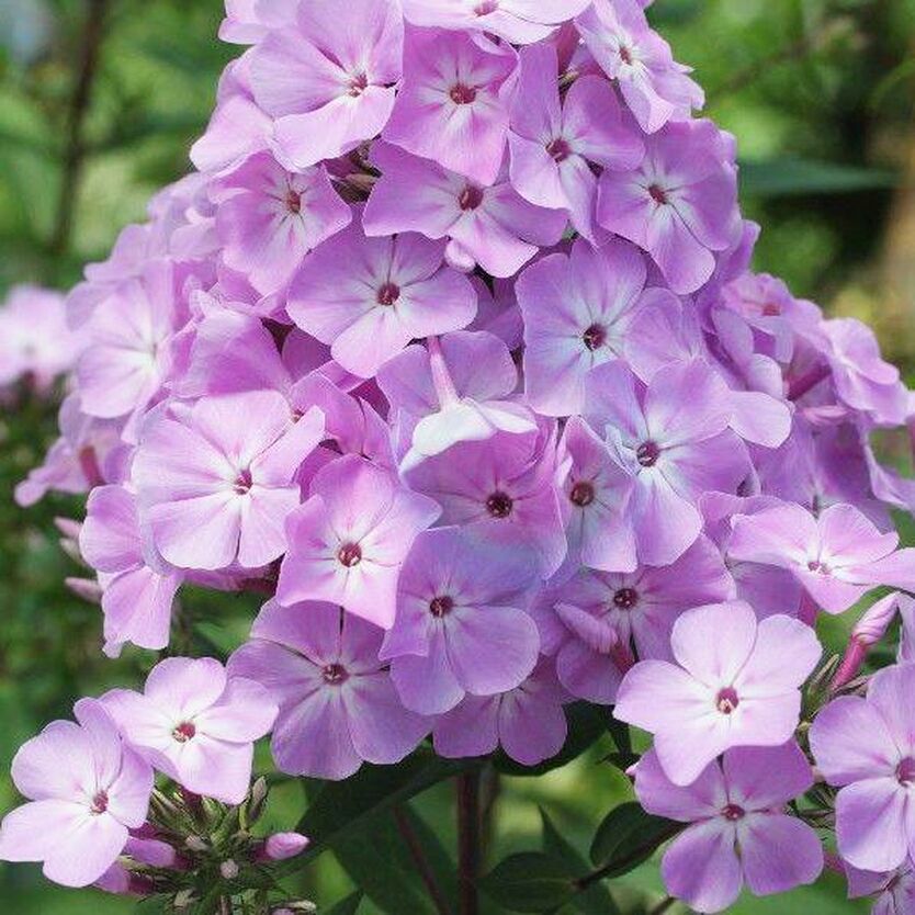 Флокс метельчатый Мирослав - очень милый сорт из новой серии "Старорусские имена" селекции Борисовой В.Г. Светло-сиреневый с белой звездочкой, по лепесткам редкие малиновые штрихи. Соцветие очень плотное, овально- пирамидальное.