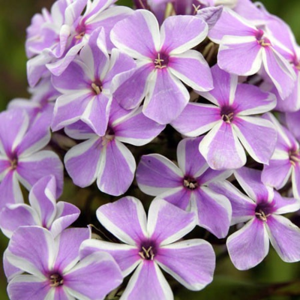 Флокс метельчатый Олл ин Ван вырастает более 1 метра, при этом формируя крупные соцветия из небольших цветков белого цвета с широкой центральной полосой фиолетового цвета. Растение очень ароматное.