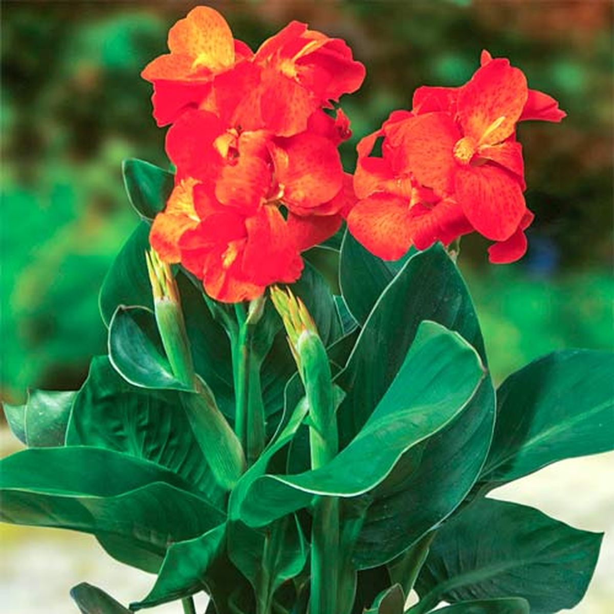 Клубни канны карликовой Хэппи Клео позволят за короткое время украсить свой участок растением с цветами, которые будут напоминать о знойных тропиках. По сравнению с другими каннами эта ― просто «малютка», в высоту взрослое растение достигает всего лишь 40 сантиметров. Но зато в период цветения ничто не сможет затмить ее красоту. Цветение начинается уже в мае, на крепких цветоносах распускаются крупные ярко-оранжевые цветки с более контрастным мелким крапом, который покрывает лепестки. Сортовая серия устойчива к различным заболеваниям, адаптирована к летнему зною. Канна карликовая Хэппи Клео ― это отличный выбор для оформления участка или балкона.