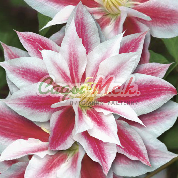 Клематис крупноцветковый Андромеда характеризуется обильным цветением. Должный уход, правильный полив, подкормка, обрезка способствуют росту куста до высоты в 400 сантиметров. Цветы у «Андромеды» крупные, их диаметр может достигать 16 сантиметров. Бутоны – очень красивые, представляют собой белоснежный чашелистик с яркими розовыми полосами по центру. Тычинки цветка крупные и золотистые.