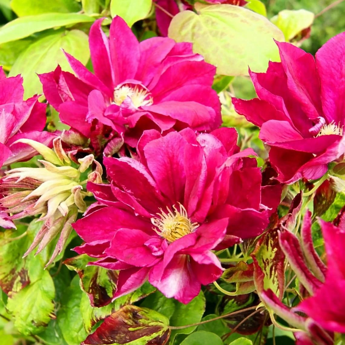 Клематис Ред Стар (Clematis Red Star) привлекает внимание яркой, насыщенной окраской. Сорт японский, устойчивый к болезням и вредителям. Обильно цветет в мае и июне. В августе и сентябре появляются одинокие бутоны. Длина лианы не более 2 м. Диаметр цветков до 14 см, по форме они махровые или полумахровые. Лепестки овальные, с заостренными кончиками и чуть волнистыми краями. Окраска светло-красная. Посередине чашелистиков проходит розовая полоска. Тычинки пурпурные. Клематис Ред Стар хорошо развивается на освещенных, но укрытых от полуденного солнца участках.