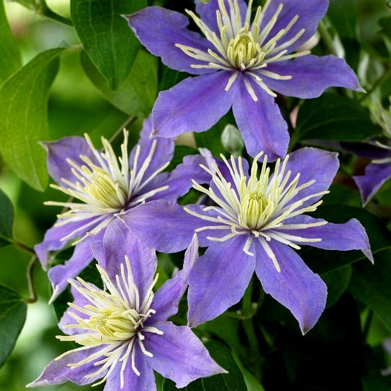 Клематис крупноцветковый Юста (Clematis) будет радовать Вас своим нежным пурпурным или розовым цветением в период с начала лета и до конца сентября. Данный сорт подходит для выращивания в контейнерах как элемент наземного озеленения. Размер цветка небольшой (не более 8 сантиметров в диаметре), но само цветение очень обильно и выделяет приятный аромат, поэтому эта напольная лиана точно украсит Ваш сад, даже не смотря на свой незначительный размер (высота растения достигает не 1,5 метров). Клематис крупноцветковый Юста обладает достаточно высокой морозостойкостью.