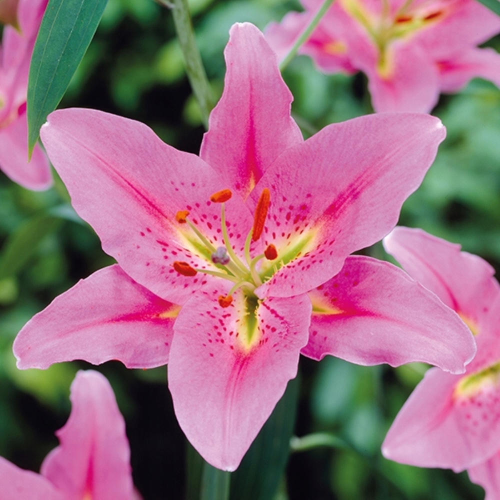 Лилия восточная Медуза (Lilium oriental Medusa) отличается неприхотливостью в выращивании, высокими декоративными качествами. Благодаря пестрому окрасу растение сразу выделяется на клумбе. Цветки крупные, насыщенного розового цвета, с желто-зеленым горлышком и пурпурным крапом.