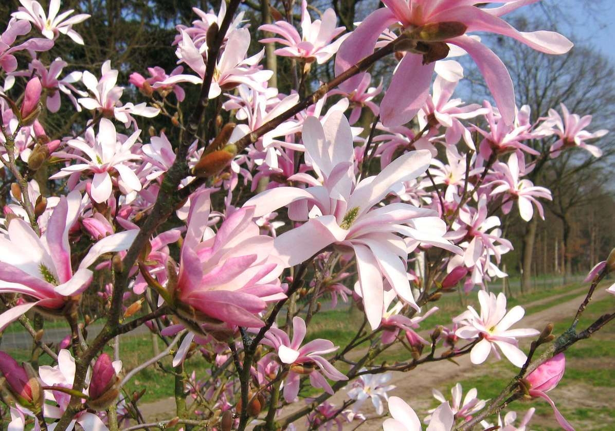 Магнолия George Henry Kern - широкий вертикально растущий сильноразветвлённый крупный кустарник с шарообразной кроной. Один из наиболее медленнорастущих сортов магнолии, с обильным и долгим цветением и высокой морозостойкостью. Дорастает до 3 м высоты, прирастает 15 см в год. Листья расположены поочерёдно, эллиптические или обратнояйцевидные, длинной 6-10 см и шириной до 5 см. Цветки громадные, снаружи лиловые (фиолетово- розовые), внутри белые, очень многочисленные, 8-10 лепестковые. Цветёт растение долго - до появления листьев: апрель - май. Предпочитает солнечные защищённые места, плодородные, легко кислые почвы. Рекомендуется для небольших садов.