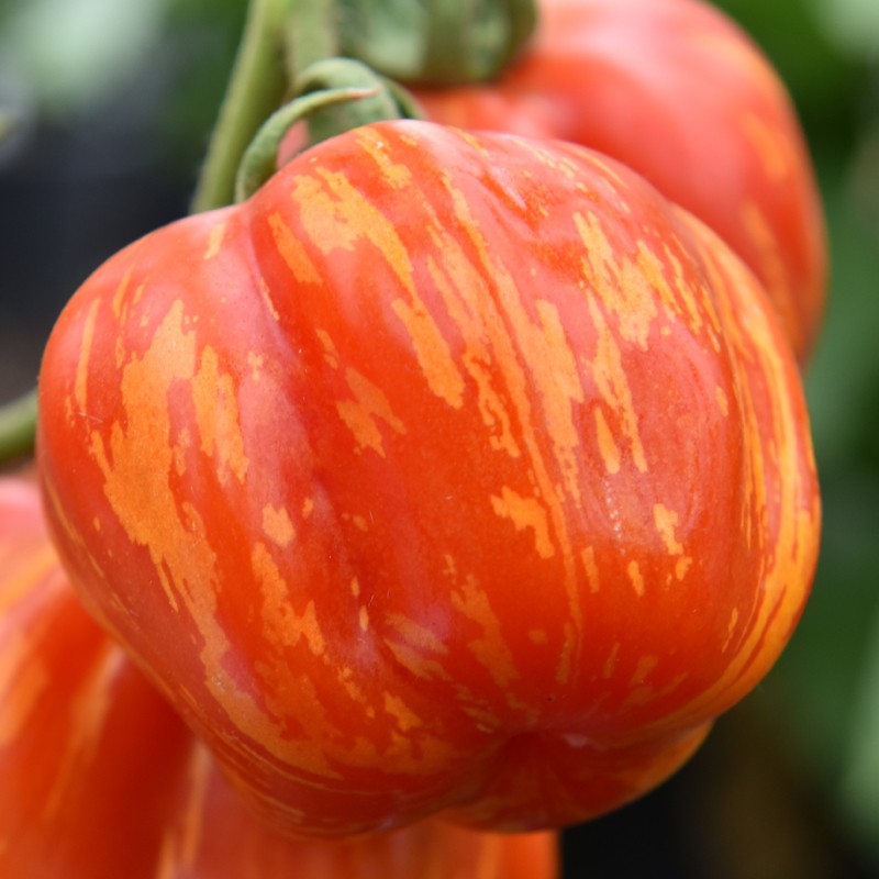 Один из самых красивых томатов на свете! Он одновременно и полосатый, и пушистый. Плоды не крупные, округлой или сливовидной формы, цвет красный, в жёлтую иполоску, массой до 100 гр. Среднеспелый (90-105 дней), полуиндетерминантный (от 50 до 1,2 м высотой).