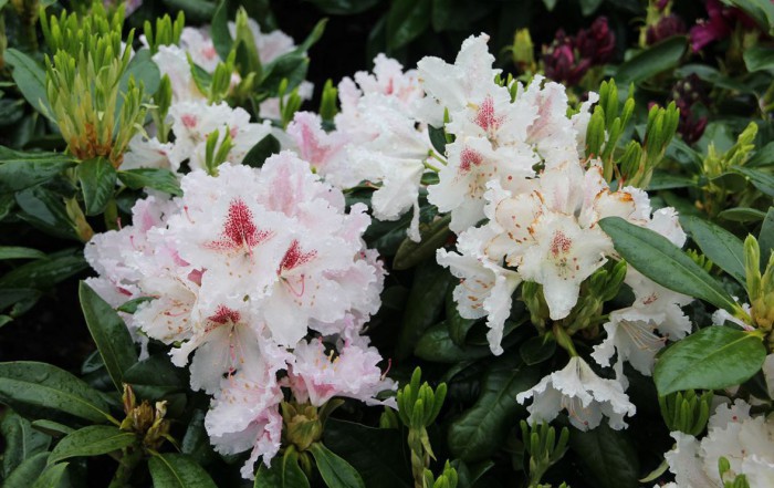 Рододендрон Progres - вечнозеленый кустарник с низкорасположенными побегами, растущими вверх. Обычно медленнорастущий. Высота 1,5-2,5 м, ширина 1,5-2 м. Бутоны фиолетово-розовые, цветки при распускании лилово-розовые, позднее - бело-розовые с темно-красным пятном и бахромчатыми краями лепестков. Соцветие компактное, состоит из 6 - 8 цветков. Листья кожистые, продолговато-эллиптические, темно-зеленые, длиной 6-8 см, шириной 2-4 см. Вечнозеленые. Край листа волнистый. Корневая система поверхностная, чувствительная к уплотнению почвы, рыхлению и затоплению.