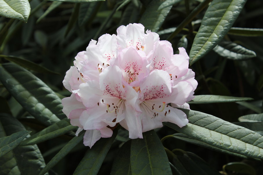 Рододендрон Schneewittchen - очень привлекательный сорт с нежными розово-белыми цветками. Цветы собраны в соцветия по 9-11 цветков диаметром 6-7 см. Предпочитает прохладные, свежие, дренированные, супесчаные почвы, от очень кислых до подкисленных. Высота 0,8-1,2 м. Период цветения май - июнь.