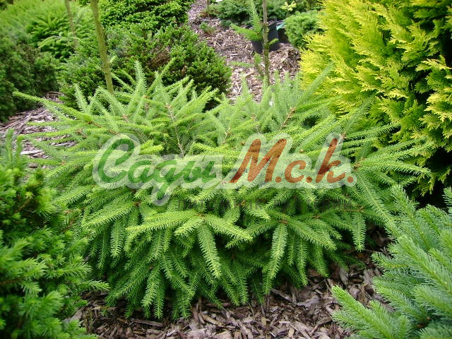 Взрослое растение в диаметре достигает 1 м, а в высоту не превышает 0,4 м. Небольшие, плотные побеги формируют округлую крону в виде подушки. Хвоя короткая, тонкая, зеленовато-голубого оттенка. Крупномер обыкновенная Echiniformis хорошо приживается как на солнечных участках, так и в полутени. Не терпит засухи, лучше растет на увлажненных почвах. семена спокойно реагируют на обрезку, для придания аккуратной формы нужно время от времени удалять отдельные вертикальные побеги.