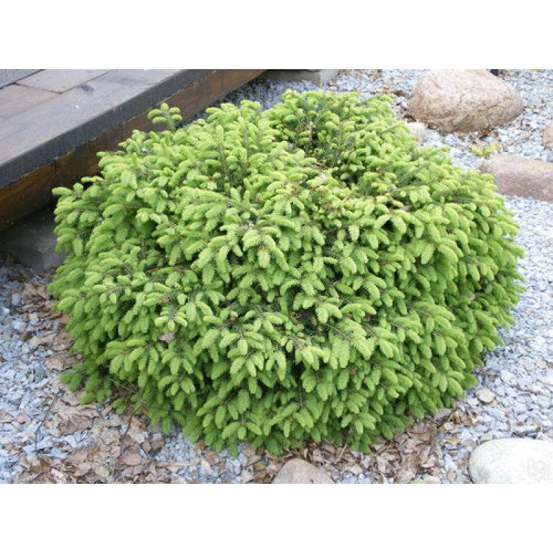 Ель обыкновенная Tabuliformis - растение карликовой формы, крона подушковидная с углубленной вершиной, побеги располагаются горизонтально. К 10 годам растение достигает в высоту 0,5-1,0 м, в диаметре около 1 м. Размер в 35 лет достигает 1 м высоты и до 2,4 м в диаметре. Хвоя короткая, игольчатая, жесткая, острая, темно-зеленого цвета. Ель светолюбива, теневынослива.