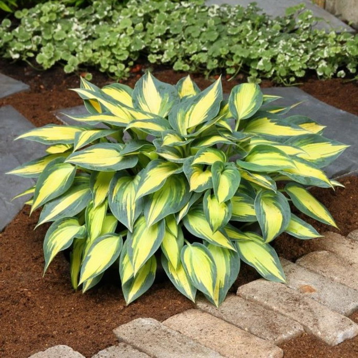 Хоста гибридная Мэджик Айленд - куст высотой 30 см, шириной 50 см. Листья с темно-зеленой каймой и желто-лаймовым перьевидным центром. Для посадки выбирают полутенистые или тенистые места, предпочитает влажные почвы. Полив тщательный и регулярный, при хорошем поливе у хосты будут крупные, здоровые листья. Растение прекрасно зимует. На одном месте может расти более 20 лет. Хоста гибридная Мэджик Айленд эффектно смотрятся у водоёмов.