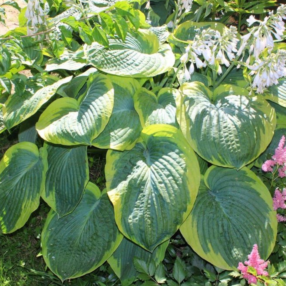 Хоста гибридная Самурай потребуют от садовода особенно тщательного выбора места для посадки. Прежде всего потому, что этот сорт отличается крупными размерами, достигая в высоту 80 сантиметров. Листья очень плотные с ярко выраженными морщинистостью и жилкованием. Очень эффектно смотрится на листве контрастный узор: синий центр с краями кремового или салатного оттенка. Летом Хоста гибридная Самурай выпускает цветоносы, которые в высоту достигают 120 сантиметров. Данный сорт гарантированно найдет свое почетное место в каждом саду, привлекая внимание очаровательной листвой в тени кустарников или деревьев.