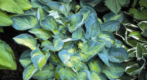 Хоста Tоkudаmа Аurеоnеbulоsа – эффектный, гибридный, очень сильный и красивый сорт, заставляющий любоваться своими многоцветными листьями: по желтому фону невидимая рука природы-художника нанесла полоски и мазки зеленого, оливкового и голубого цвета. У растения фактурные, чашеобразные, гофрированные плотные листья, покрытые сизым налетом и собранные в аккуратные прикорневые розетки. Цветы практически белые, нежные и невероятно красивые. Предпочитает полутенистые места, но даже на влажных и удобренных почвах разрастается очень медленно. Благодаря своей декоративности, растение будет эффектно смотреться в любом месте: на газоне, в смешанных групповых посадках или в маленьких тенистых садиках.